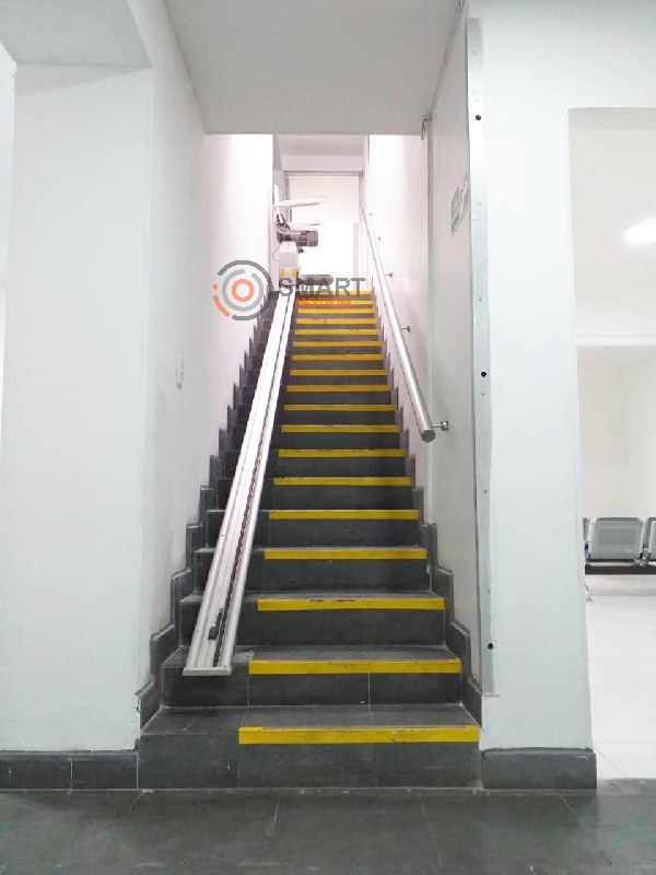 Ahorro de espacio: Al plegarse, la silla salvaescaleras de riel único ocupa un espacio mínimo, lo que la convierte en la solución ideal para escaleras estrechas o con poco espacio disponible. Su diseño compacto asegura que las escaleras permanezcan accesibles para otros usuarios cuando no está en uso.