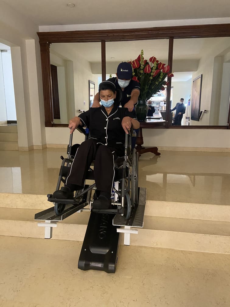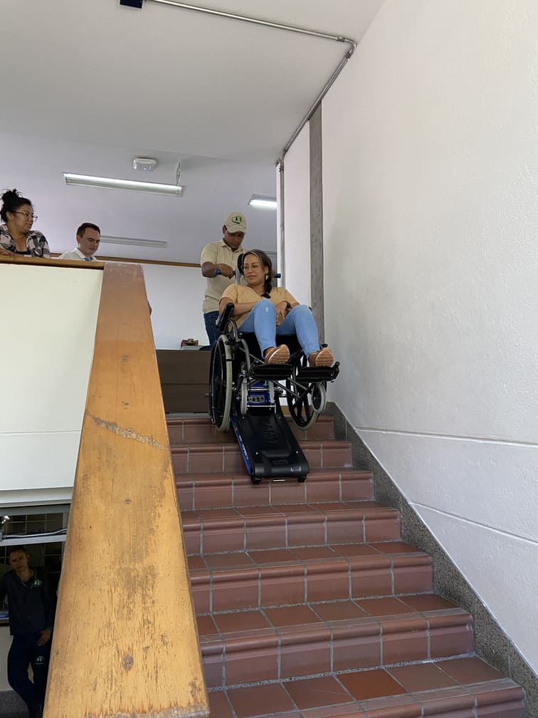 Facilidad de uso: Es sencilla de usar, la persona usuaria simplemente se acomoda en la silla y un acompañante la sube o baja por las escaleras utilizando los intuitivos controles. No se requiere de una instalación compleja ni de obras en las estructuras, por lo que se puede usar de forma inmediata.